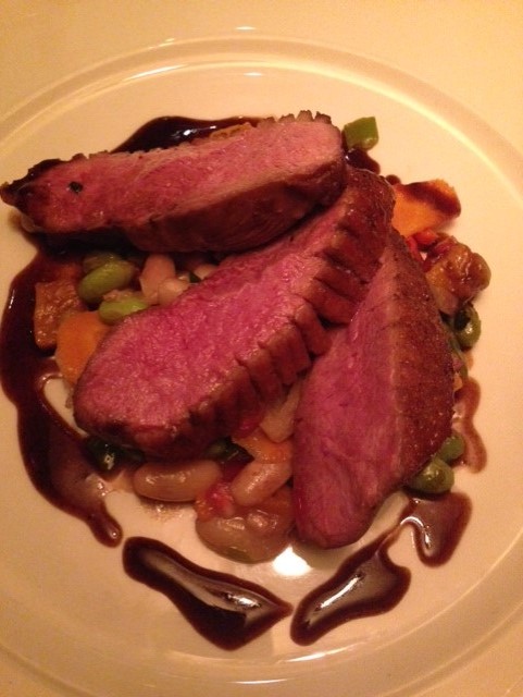 Mains are excellent. I have the new duck dish - a pan roasted breast with buttered winter vegetables, aged balsamic and honey - and it is just lovely. The duck is perfectly cooked - briskly seared on the outside and pink and juicy within (they will do it well done if you want, but look visibly relieved when I ask for it pink), and resting on a bed of interesting vegetables (although there is a hefty hit of chilli here that isn't advertised on the menu - not a problem for me, but others may wish to be wary). Despite this plate of meaty joy, I end up with total, utter dinner envy, as the ADFF has the whole salt baked sea bass and it is SPECTACULAR. The theatre of such a dish is always fun, involving as it does an intrepid member of staff setting up a table alongside yours and burrowing wildly into the salty casing in order to free the fish that lies within; this is expertly done by John, whose service is faultless all night. Indeed, after such drama the dish itself looks a little underwhelming, but its looks belie its stunning flavour - soft, gently flaking fish, infused with lemon and herbs from within and a good sturdy blast of saltiness from without. The ADFF practically sucks the bones clean; not a phrase I ever expected to use in polite company. The fish is not cheap at £18.95, particularly as it comes solo and requires the ordering of extra side dishes, but it is perfection, and to be honest I always order fries and some Italian fried courgettes whatever I'm having - a meal at Gusto is simply unthinkable without either or both of these splendid items.
